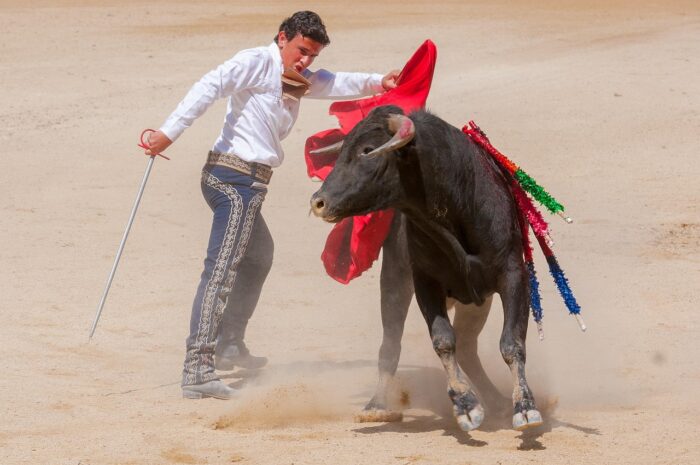 これは、闘牛に使われるケープが赤であることや、情熱的な表現に赤がぴったりマッチすることなどが理由です。