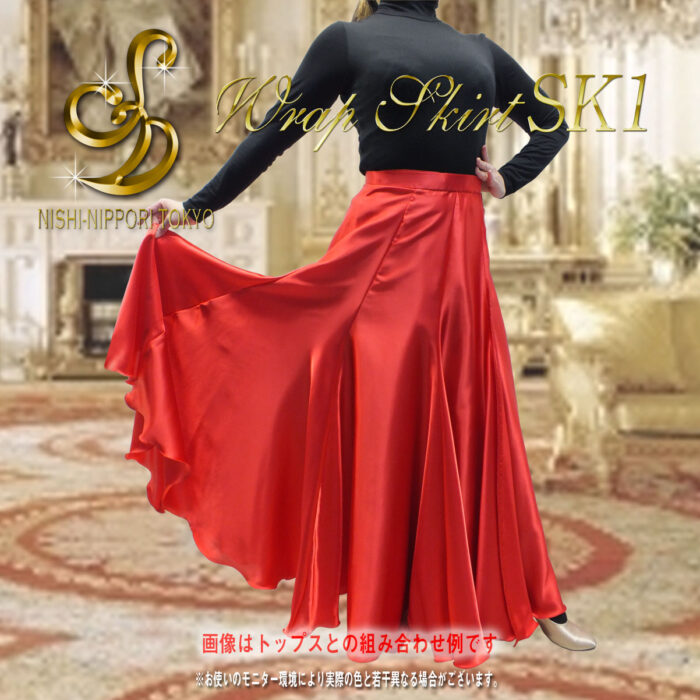 ラップスカート(巻スカート)SK1は、スカートのシルエットがとてもエレガントなサテンの巻スカートです。