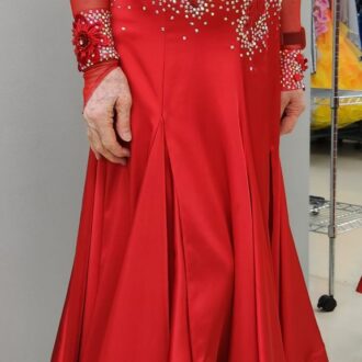 スカートのシルエットがとってもエレガントでけまわしもたっぷりなサテンの巻スカート、全長11.25mのけまわしは、社交ダンスパソドブレ用に十分なスカート、レッスンだけでなくデモでも使われて評判が良いです。
