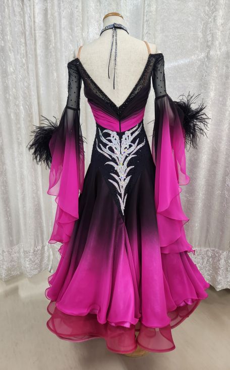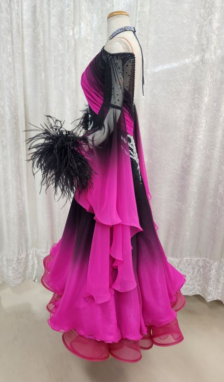 スタイル:グラデーションがカッコいい。袖口のフェザーがポイント。細さもカバーできる美しいドレスライン。