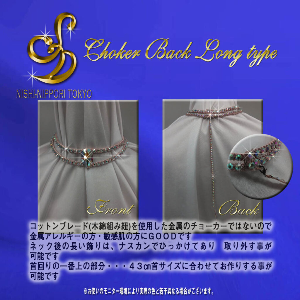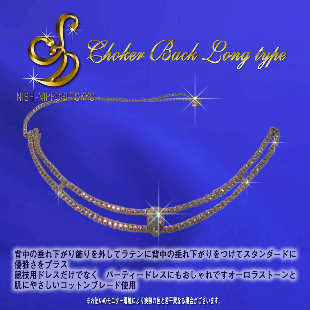 背中の垂れ下がり飾りを外してラテンに、背中の垂れ下がりをつけてスタンダードに、優雅さをプラス。