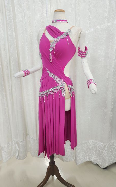 【試着・レンタル・購入】ハワイアンピンクのSサイズラテンドレス
