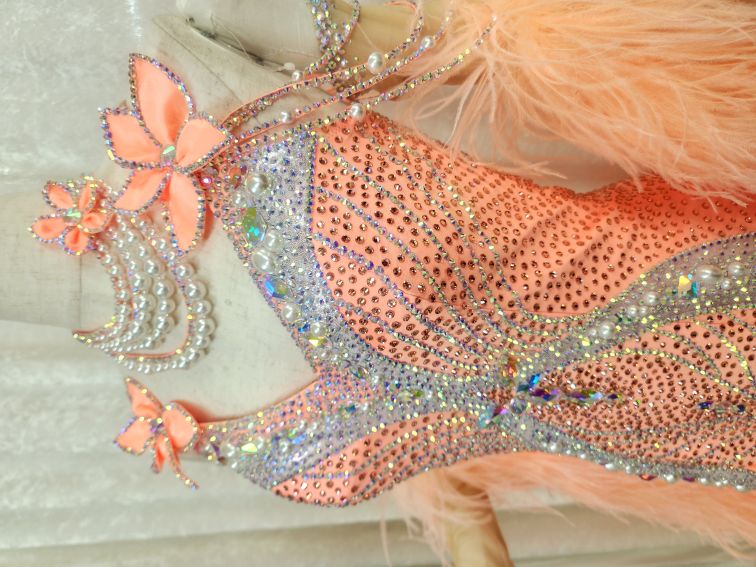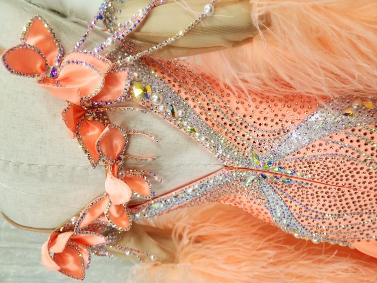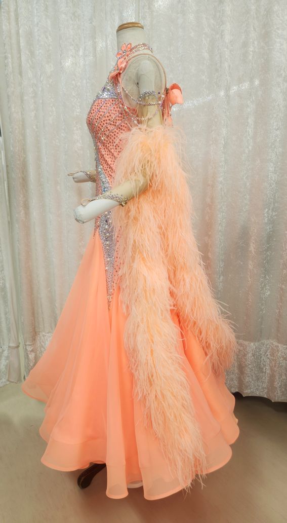 スタイル:フェザー(イギリス製)フロートが豪華なドレス。背中と腕の飾りが動きを助けてくれる。