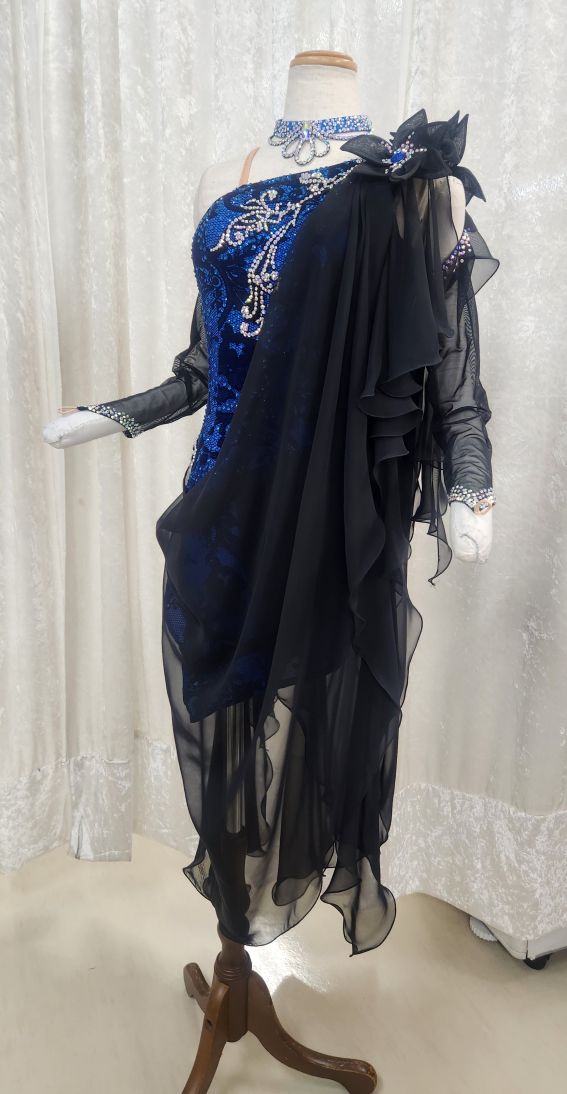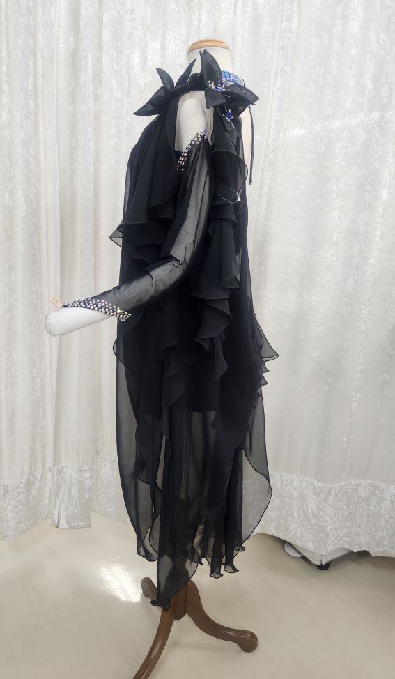 スタイル:スカートと化した黒のジョーゼットドレープが色気を誘う。フロッキー加工された高級素材を使用してます。