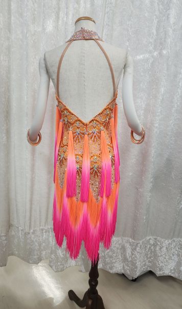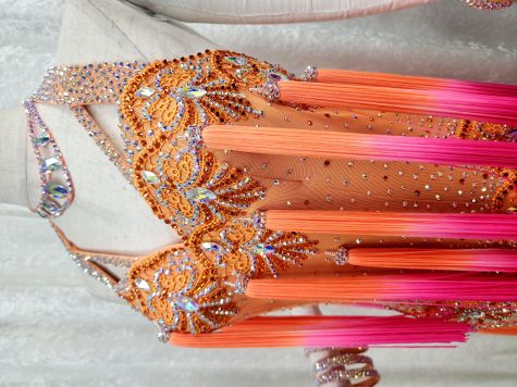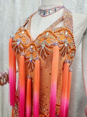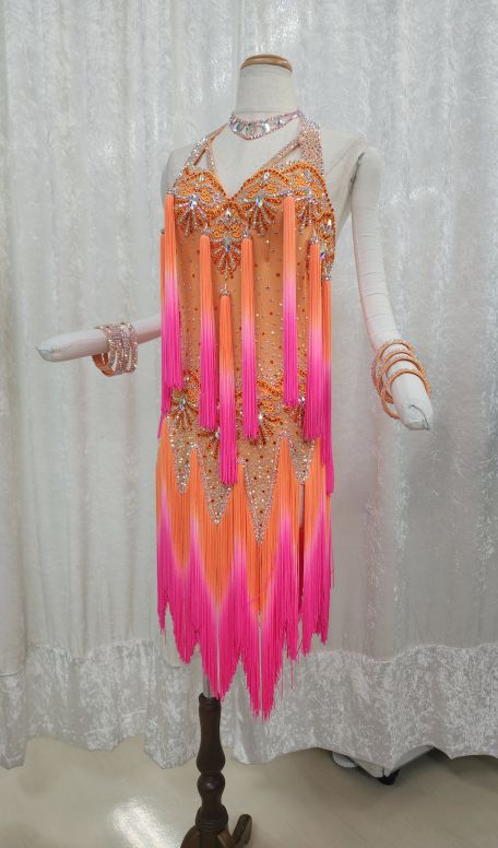 【試着・レンタル・購入】華やかでキュートなオレンジピンクのラテンドレス