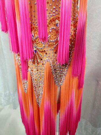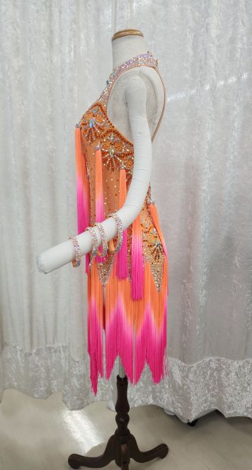 スタイル:フリンジがタッセル状についていて豪華なラテンドレス。フリンジのグラデーションにもこだわってます。