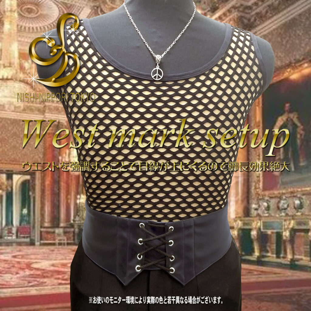 ウエストマークを腰上に強調することで目線が上にくるので脚長効果が得られます。