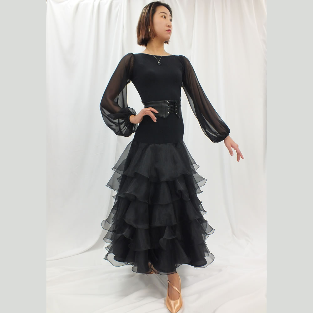 オーガンジー5段のティアードスカート。腰からのティアードだから子供っぽく見えない、大人のティアードスカートです。